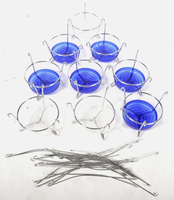Corniglia Plant Holders - Marco Ferreri for ROBOTS - A set of three Italian hanging plant holders / stands comprising of chrome tubular frames with inset plastic removable bases. Each breaking down into pieces for ease of transporting. Each measures approx; 80cm x 30cm.