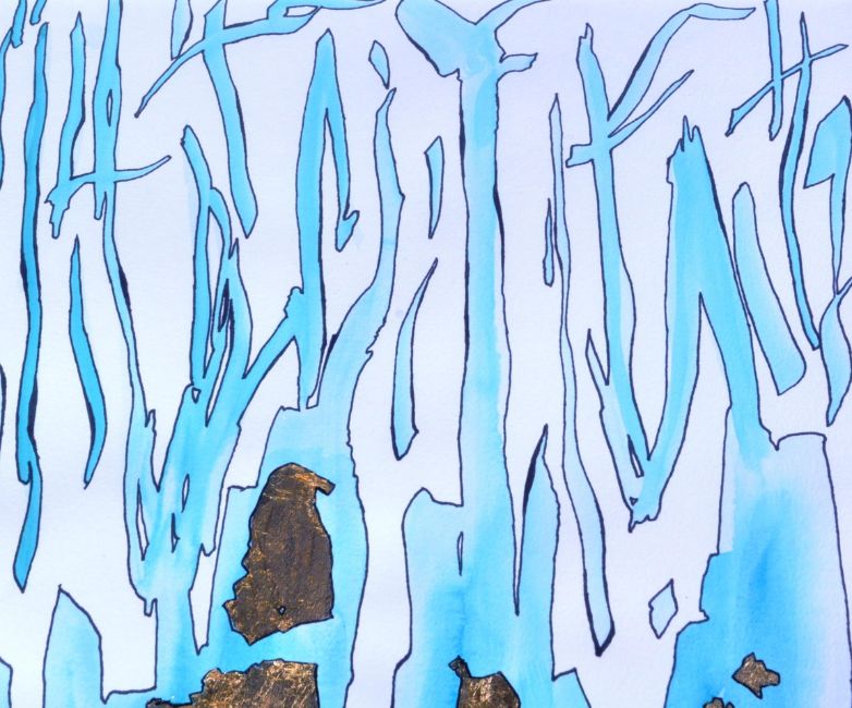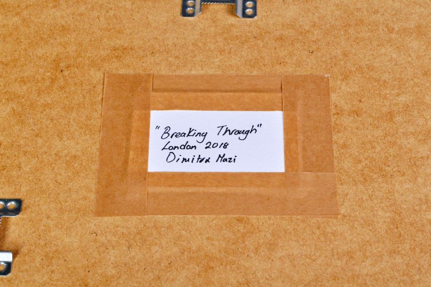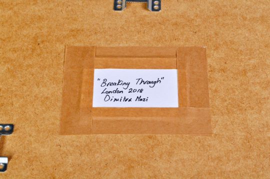 Dimitra Mazi - Bristol Artist - A contemporary abstract watercolour, gold-leaf and marker on paper painting entitled "Breaking Through". Framed and glazed. Measures approx; 53cm x 43cm. Dimitra Mazi was born in Corfu, Greece in 1980. In 1998, she moved to London to find her creative path, where she decided to study Public Art and Design at Chelsea College of Art and Design.