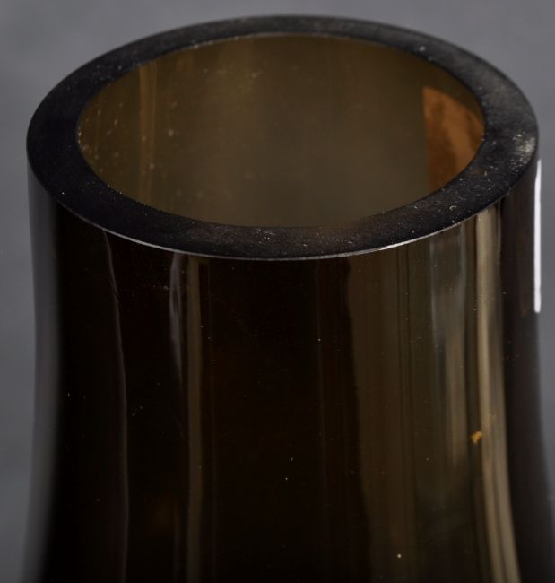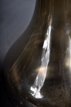 A retro vintage 20th Century studio art glass vase of large bulbous form. The vase in a smokey brown colour with tapered neck and globular body. Measures approx; 38cm tall.