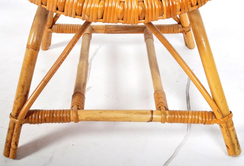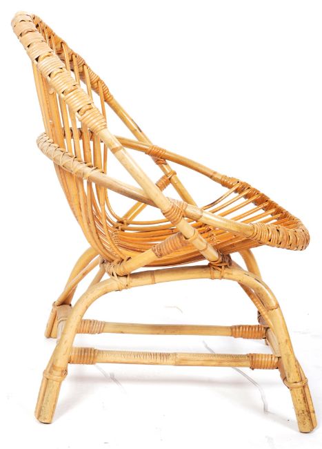 A retro vintage 1960's Italian cane satellite easy lounge chair in the manner of Franco Albini. The tub shape chair comprising of two interlocking circles with cane rail seats and backs all raised on shaped leg supports. Measures approx; 73cm. Seat height 35cm.