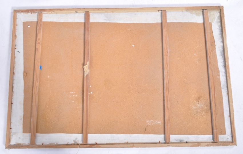 Frieda - A retro mid 20th Century oil on canvas laid on board abstract painting created using splashes of reds, white and black. Set with a mid Century frame. Signed to the lower right. Measures approx; 114cm x 73cm.
