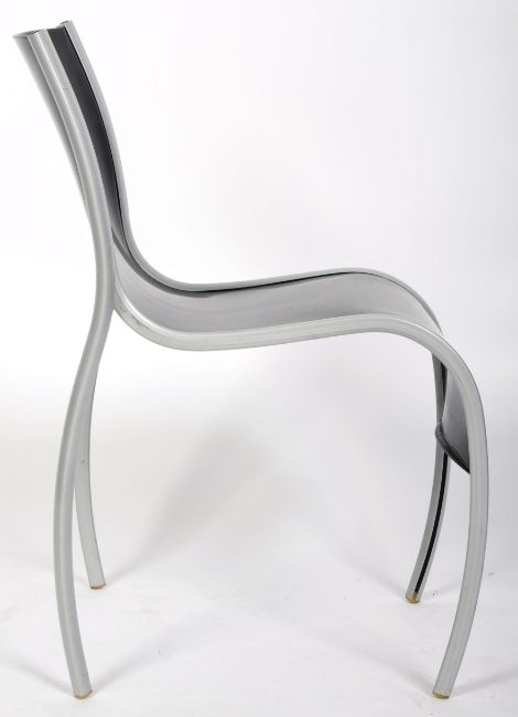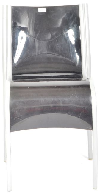 Ron Arad - Kartell - FPE - An original late 20th century retro vintage plastic and coated steel stacking side / dining chair comprising of curved Vaseline semi translucent seats with coated steel frames. Manufacturer mold marks to base. Measures approx; 68cm x 44cm x 51cm.