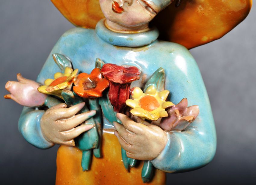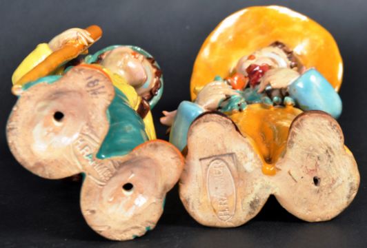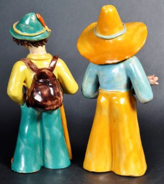 Maria H. Rahmer - Pair of 20th Century Austrian Art Deco hand painted terracotta figures one in the form of a traveller and the other holding flowers. Both bearing makers marks to the bases. Wear commensurate with age. Tallest measures approx; 21cm x 9cm.