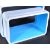 A graduating set of four retro 20th Century rounded cube shelving units of wooden construction having white finished exteriors and orange interiors. Each with wall mountable backs. Larges measures approx; 28cm x 41cm x 12cm.