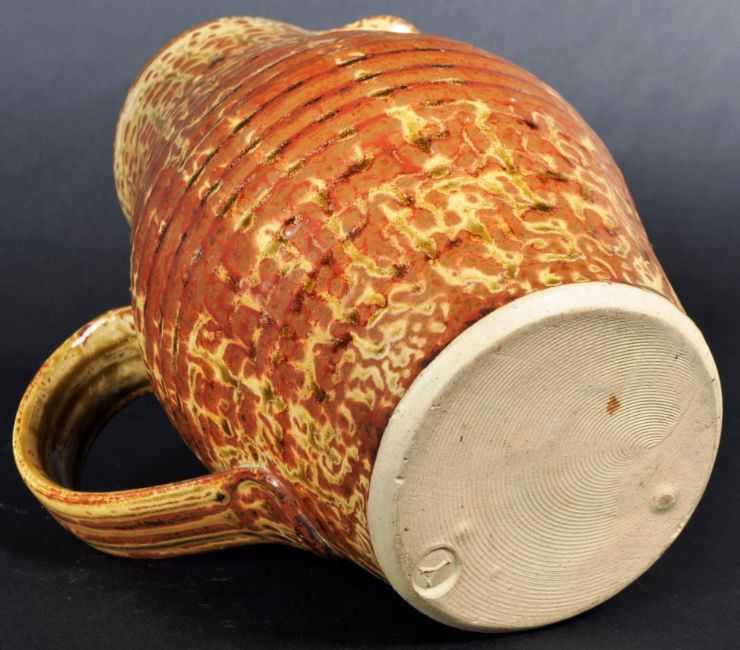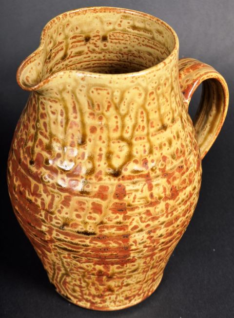 Michael Leach (1913-1985) - A mid 20th Century studio art pottery jug of typical form having a glazed mottled finish with impressed Y for Leach to the base. Measures approx; 21cm x 18cm.