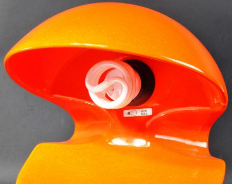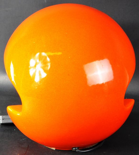 Alvino Bagni - Tacchini - Miss Pac Light - A retro 20th Century Italian designer table lamp light inspired by motorcycle helmets, crafted using traditional artisan techniques. The lamp finished in vibrant orange. Miss Pack Lamp measures approx; 28cm x 22cm x 25cm.