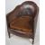 A vintage 20th Century Art Deco well weathered brown leather club armchair / fireside lounge chair having a shaped backrest with cushioned seat rest. All raised on reeded legs. Measures approx; 81cm x 65cm x 61cm.