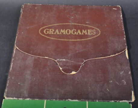 A vintage 1930's Gramogames card race game. Cardboard pull out boards with various symbols housed in a brown cardboard packet.