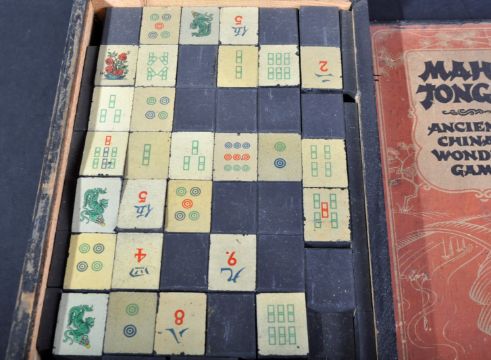 A late 19th Century W. Selling of London ' Mah-jong ' tile based board game. The tiles with various chinese symbols a illustrations, housed within original box.
