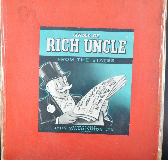 A vintage Waddingtons made ' Game of Rich Uncle '. The monopoly style board game housed within the original box.