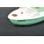 A vintage Sutcliffe made tinplate clockwork speed boat / motor boat ' Hawk '. White with green hull, rudder and propeller and a clear perspex window.