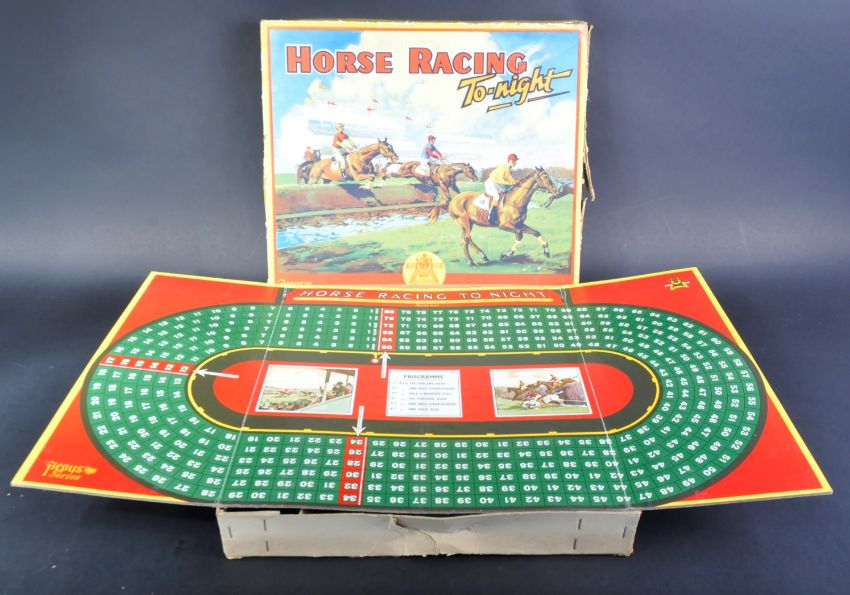 A vintage 1940's M.J.C Games made ' Horse Racing Tonight ' board game. Housed within original box. Unchecked for completeness.