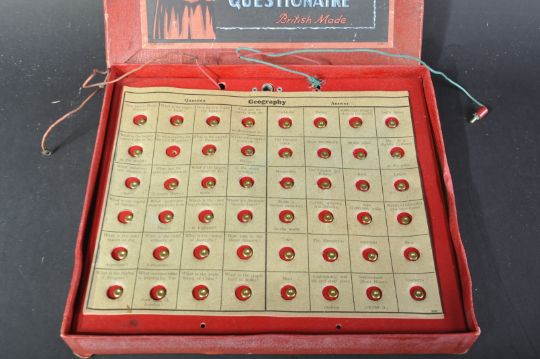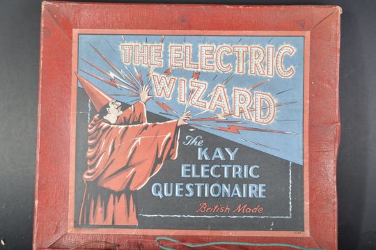An original vintage British made Electric Wizard / Electric Questionnaire board game. The game having questions relating to The British Empire / Geography / General knowledge etc with copper terminals and electric leads. Housed within original box.