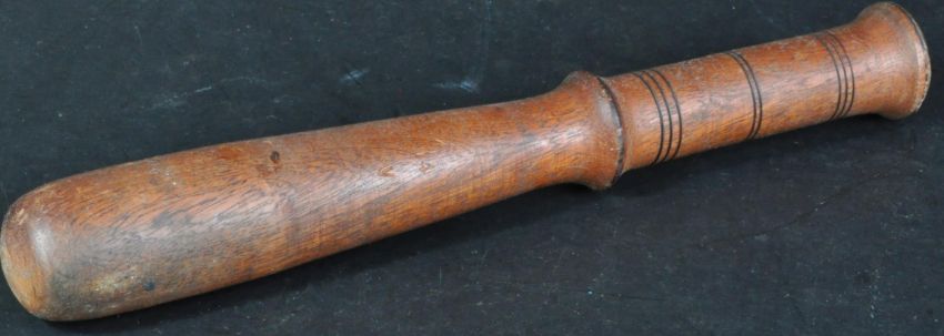A WWI First World War interest British Army issued military truncheon. Stamped with Broad Arrow and date ' 14 ' to the main shaft. Turned handle. Measures approx; 31cm long.