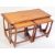 G Plan - British Modern Design - A retro vintage circa 1960s mid 20th century teak wood nest of graduating tables. The tables having chamfered edges raised on shaped supports united by a Twin stretchers.  Measures approx: 51cm x 99cm x 50cm.