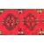 A 20th century Persian Islamic hand made wool Turkoman rug having a repeating geometric motif with a red background surrounded by a black border. Measures 255cm x 124cm.