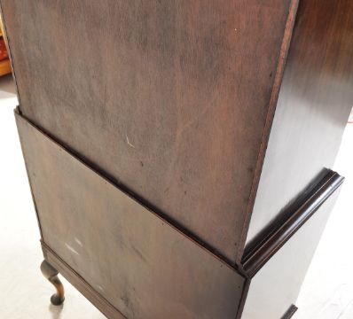A 20th century Queen Anne Revival walnut bookcase having astragal glazed door opening to to reveal a shelved interior raised on a bank of shelves raised on cabriole legs.