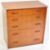 A mid century teak wood chest of drawers by Wrighton Furniture. Raised on an inset plinth base having a central bank of drawers with recessed shaped lozenge handles. Flared edge top set above. Measures approx: