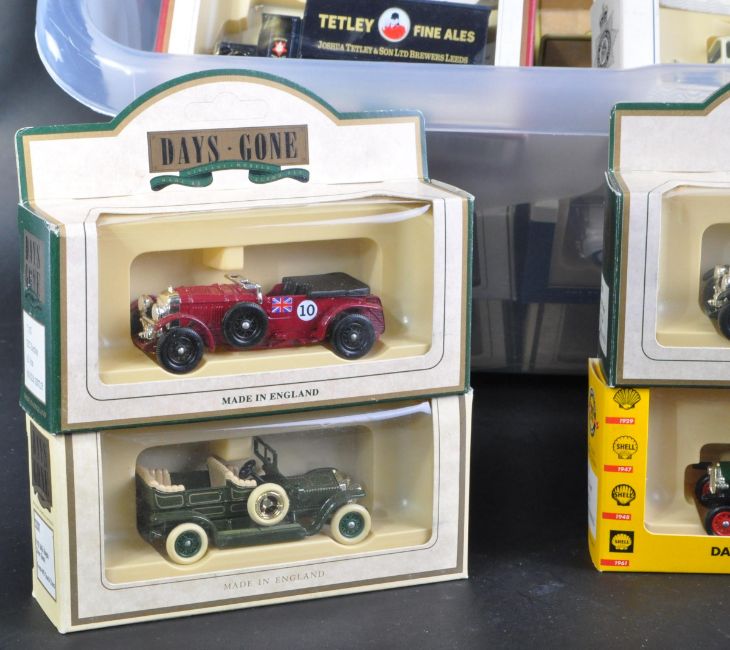 A large collection of approximately x50 assorted Lledo Days Gone boxed diecast model cars. Largely advertising related / promotional models along with some haulage and public transport models present.
