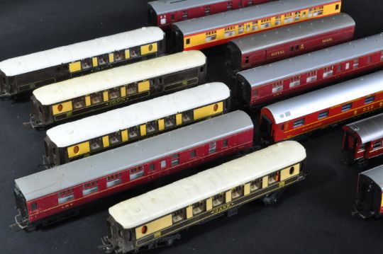 A large collection of x23 assorted Triang / Tri-ang, Hornby and Lima 00 gauge model railway trainset locomotive coaches / carriages to include; Royal Mail car, British Railways Sleeping car, Pullman coaches Anne and Jane and others.