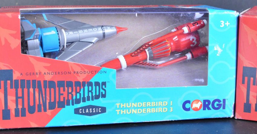 Two original Corgi made Gerry Anderson boxed diecast model Thunderbirds. Both examples being models No. CC00901 Thunderbirds 1 and 3. Contents appearing mint and likely unused within original boxes.