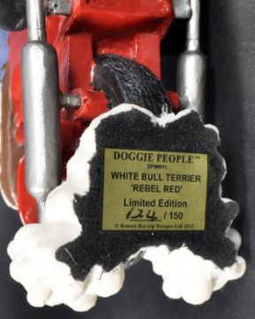 Doggie People - Robert Harrop - DPWR11 White Bull Terrier ' Rebel Red ' The Waggy Races - Limited Edition To 150. Highly detailed resin statue / figurine. Statue appears mint, with no damage. Boxed. Note; from a large collection of Robert Harrop & other statues / figurines. Condition is stated within each description, however buyers are reminded that such statements are not forensic reports and all items will remain sold 'as is'. As a rule, statues do appear mint and undamaged, but this is not guaranteed. Boxes range in condition, and some have wear from storage. In all instances buyers are required to satisfy themselves. Certificates / paperwork are present if photographed, if there are no photographs of certificates then one isn't present.
