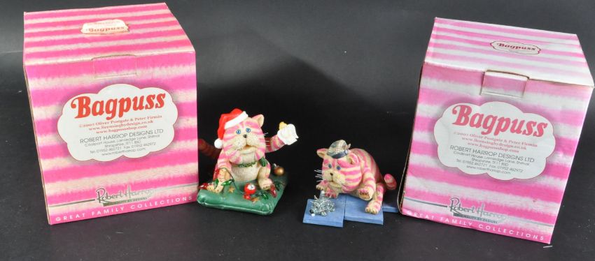 Bagpuss - Robert Harrop - x2 boxed figurines BGCS05 Baubles & Bagpuss Christmas Special 2005 (Limited Edition of 1000) and BG15 Bagpuss The Hamish. Highly detailed Christmas themed resin statues / figurines from the classic Oliver Postgate & Peter Firmin animated series. Figures appear mint, with no damage. Boxed.Note; from a large collection of Robert Harrop & other statues / figurines. Condition is stated within each description, however buyers are reminded that such statements are not forensic reports and all items will remain sold 'as is'. As a rule, statues do appear mint and undamaged, but this is not guaranteed. Boxes range in condition, and some have wear from storage. In all instances buyers are required to satisfy themselves. Certificates / paperwork are present if photographed, if there are no photographs of certificates then one isn't present.