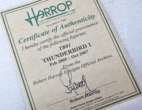 Thunderbirds – Gerry Anderson – Robert Harrop – a resin figure / statue TB01 Thunderbird 1 40th Anniversary edition. RHD Archive. Highly detailed model sign based on the classic Supermarionation series. Statue appears mint, with no damage.Note; from a large collection of Robert Harrop & other statues / figurines. Condition is stated within each description, however buyers are reminded that such statements are not forensic reports and all items will remain sold 'as is'. As a rule, statues do appear mint and undamaged, but this is not guaranteed. Boxes range in condition, and some have wear from storage. In all instances buyers are required to satisfy themselves. Certificates / paperwork are present if photographed, if there are no photographs of certificates then one isn't present.