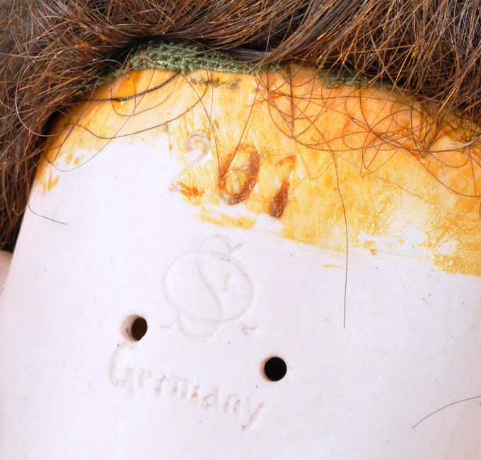 An early 20th Century German ' Schutzmeister Quendt ' made bisque headed doll. The doll having brown flirty eyes, finely painted eyebrows, blonde eyelashes and open mouth with teeth present. Composition body with all fingers and toes present, dressed in period clothing and bonnet. Marked to the back of the head 201 QS Germany. Measures approx 50cm.
