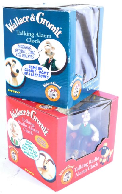 Wallace & Gromit - x2 original vintage 1990s Wesco made Wallace & Gromit ' Talking Alarm Clock ' sets (one a Radio Alarm Clock). Both appear mint and very likely unused (untested), and housed within their original boxes with all inner packing present. Aardman Animations licensed.