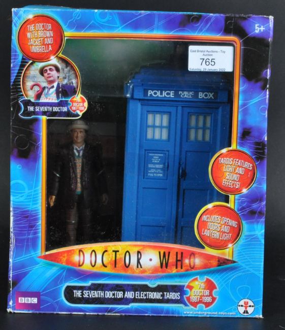 Doctor Who - Underground Toys - The Seventh Doctor And Electronic TARDIS - a 7th Doctor era action figure playset, the TARDIS with ' Light And Sound Effects '. Playset appears mint and unused, housed within its original display box.