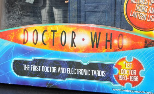 Doctor Who - Underground Toys - ' The First Doctor And Electronic TARDIS ' action figure set. Highly detailed Dr Who figure, the TARDIS with ' Light And Sound Effects '. Factory sealed, contents mint and untouched.