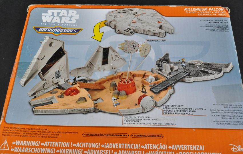 Star Wars - a collection of Kenner / Hasbro made boxed action figures and playsets, to include; Micromachines The Force Awakens Millennium Falcon (sealed), Micro Machines Podrace Arena (appears unused), Kenner Speeder Bike (unused) and Battle Masters Luke Skywalker & Wampa (sealed, as new).