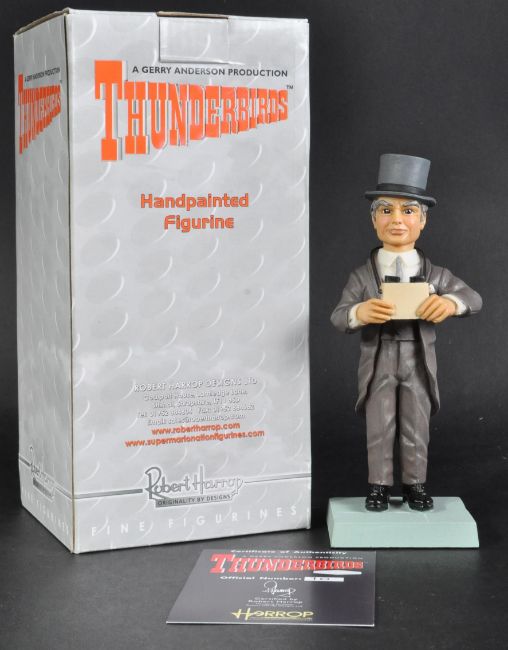 Thunderbirds – Gerry Anderson – Robert Harrop – a resin figure / statue TBF28 Jeff  Tracy ' The Duchess Assignment '. Limited Edition to 200. Highly detailed model based on the classic Supermarionation series. Statue appears mint, with no damage. Boxed.Note; from a large collection of Robert Harrop & other statues / figurines. Condition is stated within each description, however buyers are reminded that such statements are not forensic reports and all items will remain sold 'as is'. As a rule, statues do appear mint and undamaged, but this is not guaranteed. Boxes range in condition, and some have wear from storage. In all instances buyers are required to satisfy themselves. Certificates / paperwork are present if photographed, if there are no photographs of certificates then one isn't present.