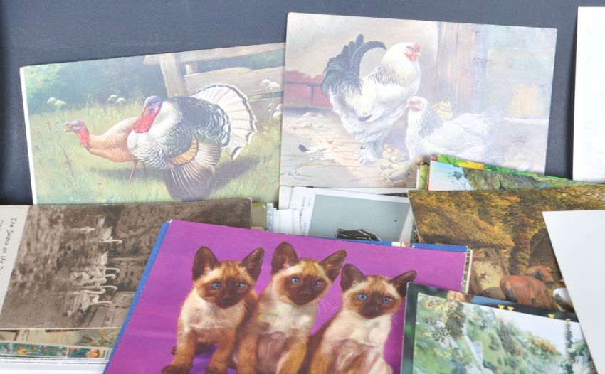 A large box of approximately 200 + postcards to include topographical scenes of the United Kingdom. Colour and Black and white along with animals, architectural,  continental scenes and many more.