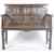 A late 18th Century George III oak settle bench of good smaller proportions. Features a fielded panel square section backrest with flared top, shaped arms supported by block supports with carved / shaped apron frieze and all raised shaped block legs. Measures approx; 96cm x 107cm x 50cm.