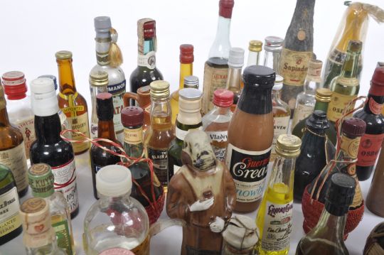 A large selection of assorted alcoholic spirit miniatures to include; Bols, Cinzano, Vladivar, Hennessy and many others. There are a variety of different whisky, liquor, vodka, rum and wine present throughout. The majority appearing to have good seals and labels. Good collection.