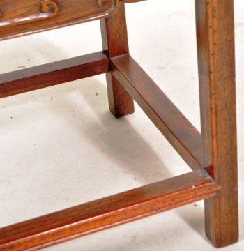 A 19th Century Chinese Oriental hardwood planter / jardiniere plant stand. Rectangular form with carved frieze and straight supports. Measures approx 38x43x33cm.