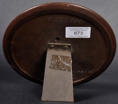 An early 20th Century pewter portrait image depicting Lord Admiral Nelson. The image cast from pewter and mounted on wooden stand. Made by a serviceman in the Navy in the 1920's.
