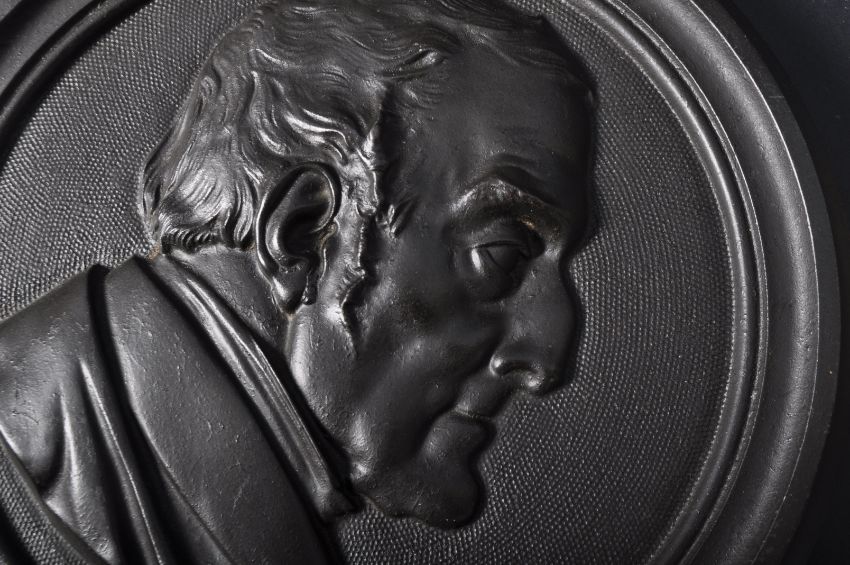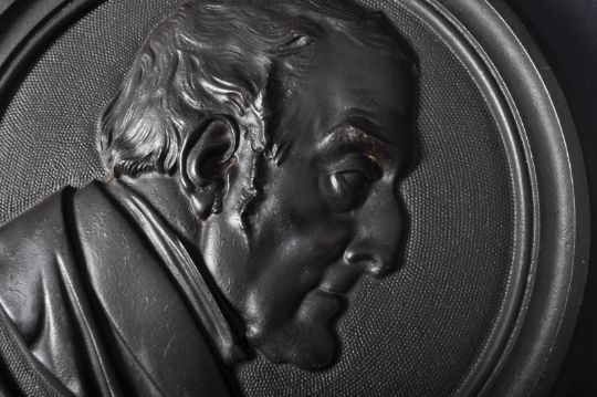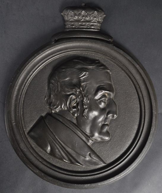 A 19th Century Victorian bronze plaque depicting the bust of The Duke of Wellington in profile cast in relief, set under a crown. Makers marks to the verso read 'moulded by Jobsons Patent Process Lt Church Works Derby, 13th November 1854'. Measures approx; 34cm x 28cm.