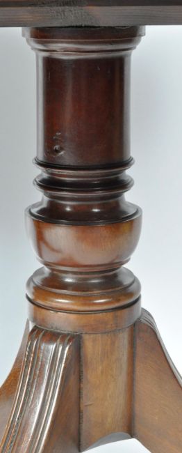 An early 19th Century Regency period mahogany and walnut crossbanded pedestal dining table comprising of two D-end table sections raised on tripod pedestal bases with carved reeding raised on brass wheel castors united by a mahogany table leaf. Measures approx; 73cm x 192cm (with leaf 100cm).