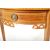 An early 20th Century French Empire oak demi lune side occasional table having a raised gallery edge top with twin folding shelf sections and fret pierced gallery edge. Line inlay decoration throughout. All raised on tapering square legs with brass feet. Damage / loss to frieze. Measures approx; 72cm x 72cm x 40cm.