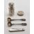 A collection of silver hallmarked items. The lot to include a silver covered scent bottle with repousse detailing (hallmarked Birmingham 1898), a cut glass dressing table pot with a silver lid (hallmarked Birmingham 1901), two Victorian silver hallmarked cruet spoons, and two mother of pearl handled fruit knives with silver blades (hallmarked Sheffield 1918 and 1904). Weight of lid and spoons 27.8g.