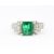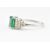 An Art Deco style emerald and diamond ring. The ring set with an octagon cut emerald flanked by diamond set terraced steps to plain shank, in white gold.  12 round brilliant cut diamonds estimated total diamond weight  0.30ct. Emerald measures 7.5 x 7 x 5.2mm. Unmarked tests indicate 18ct gold. Weight 4.5g. Size Q.5.