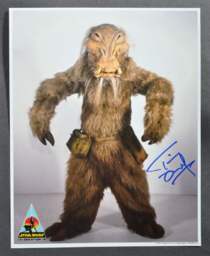 Star Wars - Tim Dry - J'Quille - autographed Official Pix Star Wars Celebration IV 8x10" colour photograph. Signed neatly in blue ink to a light area, undedicated. Obtained personally by the vendor.
