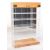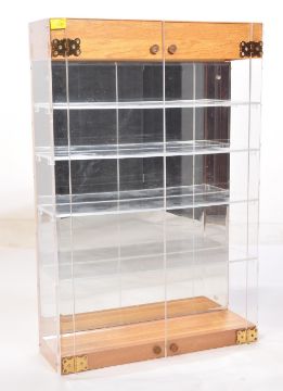 A contemporary Perspex illuminated shop display counter top twin door unit having lights to the base and a set of five shelves above.