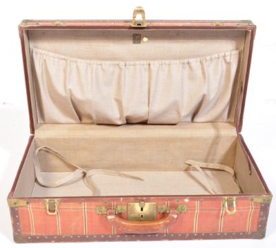 An assortment of three mid 20th century retro travel suitcases in a tartan canvas fabric. Each suitcase being of different shape including an octagonal case, all with fitted interiors. The suitcases were used on the original set of the first production of musical Barnum in 1980 in Broadway. Measures 74cm x 50cm x 24cm.