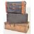 A Victorian 19th century leather and canvas bound dome top steamer trunk chest with monogram top. Together with an ebonised pine blanket box chest with wrought iron carry handles and another pine work tool chest with carry handles. Measures 41cm x 65cm x 49cm.