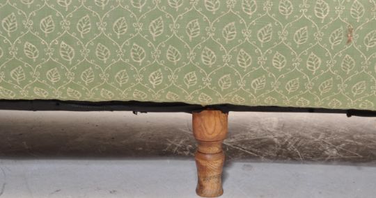 A 19th century Victorian Chesterfield sofa settee. The sofa with barrel arms and back rest being raised on turned mahogany legs. Upholstered in a modern fabric.