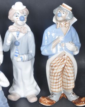 A collection of vintage 20th century Casades china porcelain clown figurines in the manner of Lladro / Nao. Measures 28cm tall. Good overall condition.